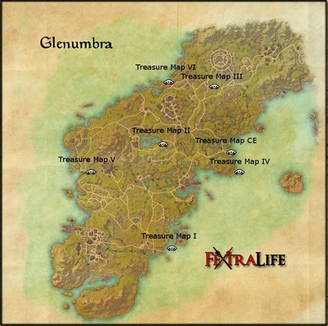Glenumbra Treasure Maps . Glenumbra treasure map vi is a treasure map in the elder scrolls online. Glenumbra treasure maps for elder scrolls online (eso) are special consumables that lead the player to treasure chests.