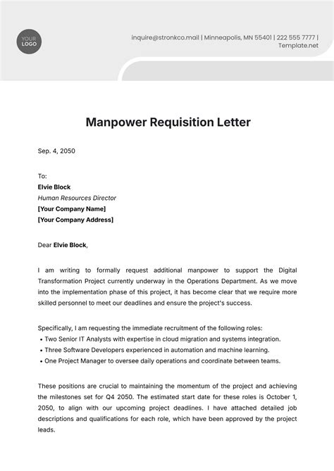 Request Letter For Additional Manpower - Find out how to justify your need, propose solutions, and. Find 15 examples of letters to request additional staff for different scenarios and purposes. Craft compelling letters of request for additional staff with 15 unique templates to help you get the support your team needs. Learn how to write a letter requesting additional staff from your boss with sample letters.